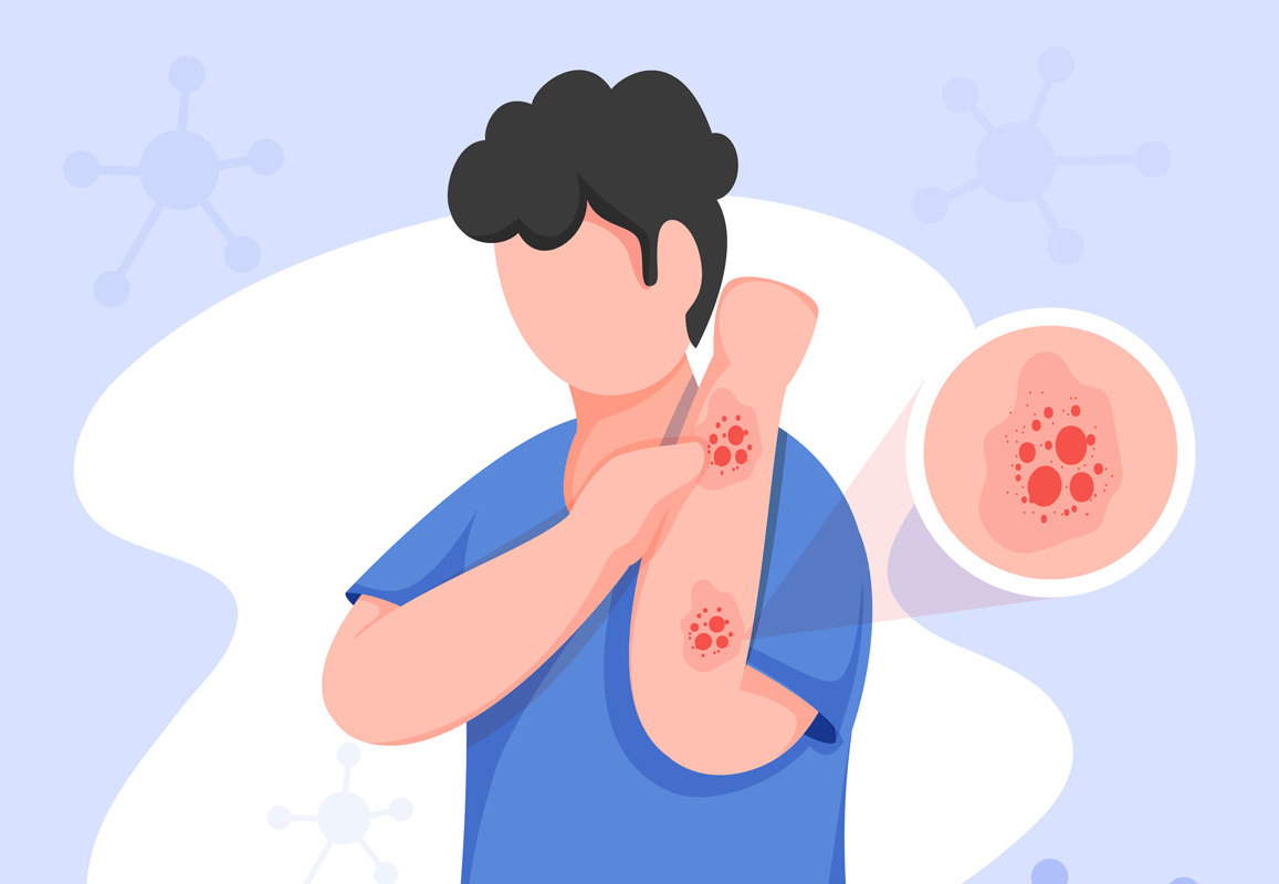 - В центре пятен образуются чешуйки и корочки, а по периферии располагаются везикулы и папулы;