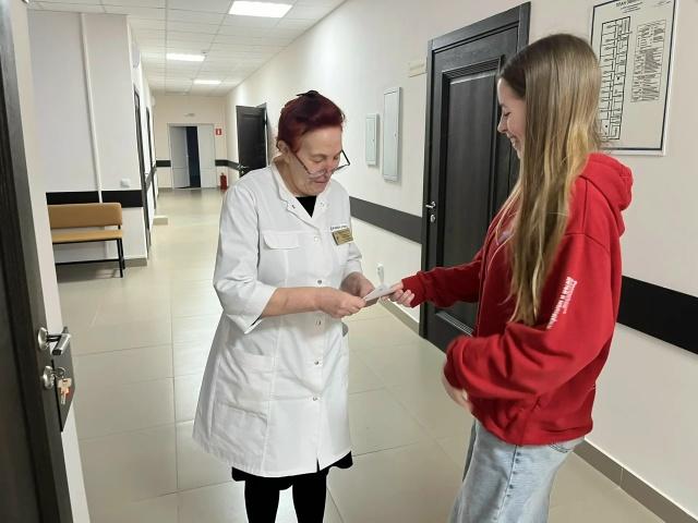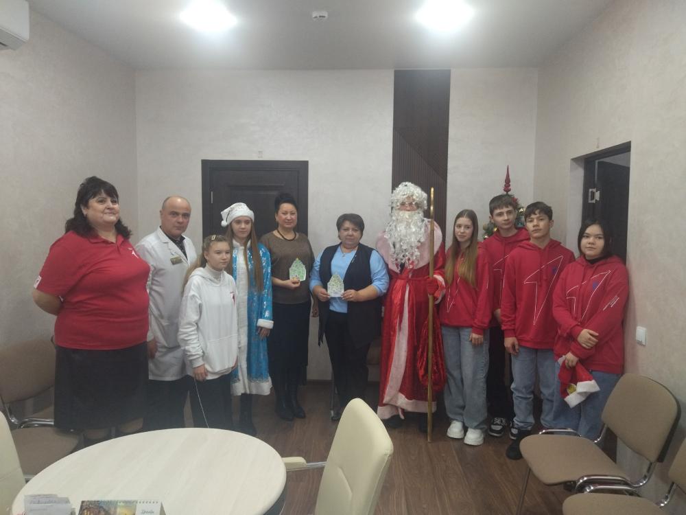 В канун 2026 года активисты первичного отделения Движения Первых МБОУСОШ 2 вместе с наставником, советником директора по воспитанию Ольгой Васецкой поздравили с предстоящими новогодними праздниками сотрудников районной больницы.