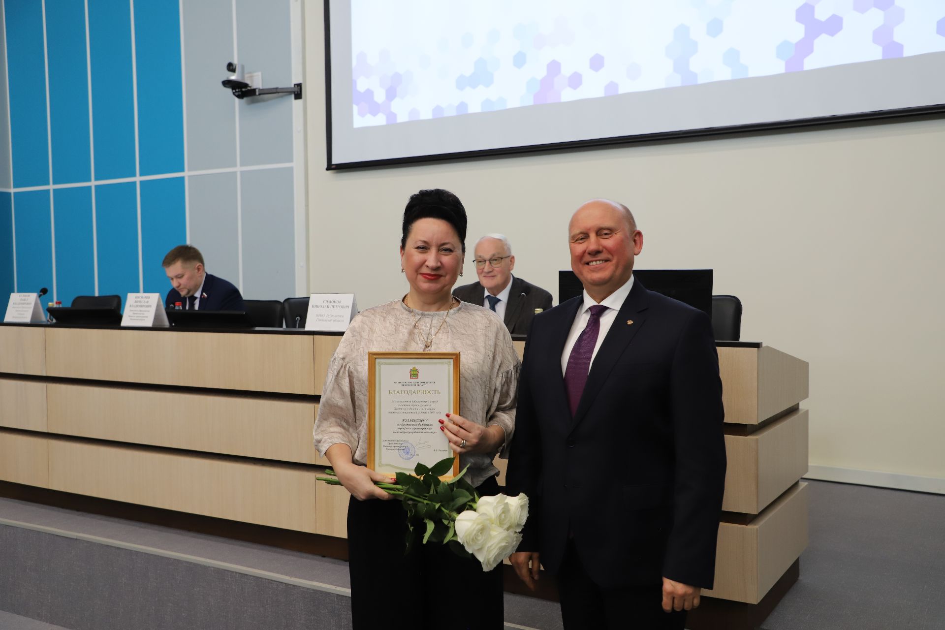 В ходе мероприятия, ведомственными грамотами были награждены коллективы больниц и главные внештатные специалисты за наилучшие показатели работы за год и содействие в реализации государственной политики в сфере охраны здоровья населения Пензенской области.